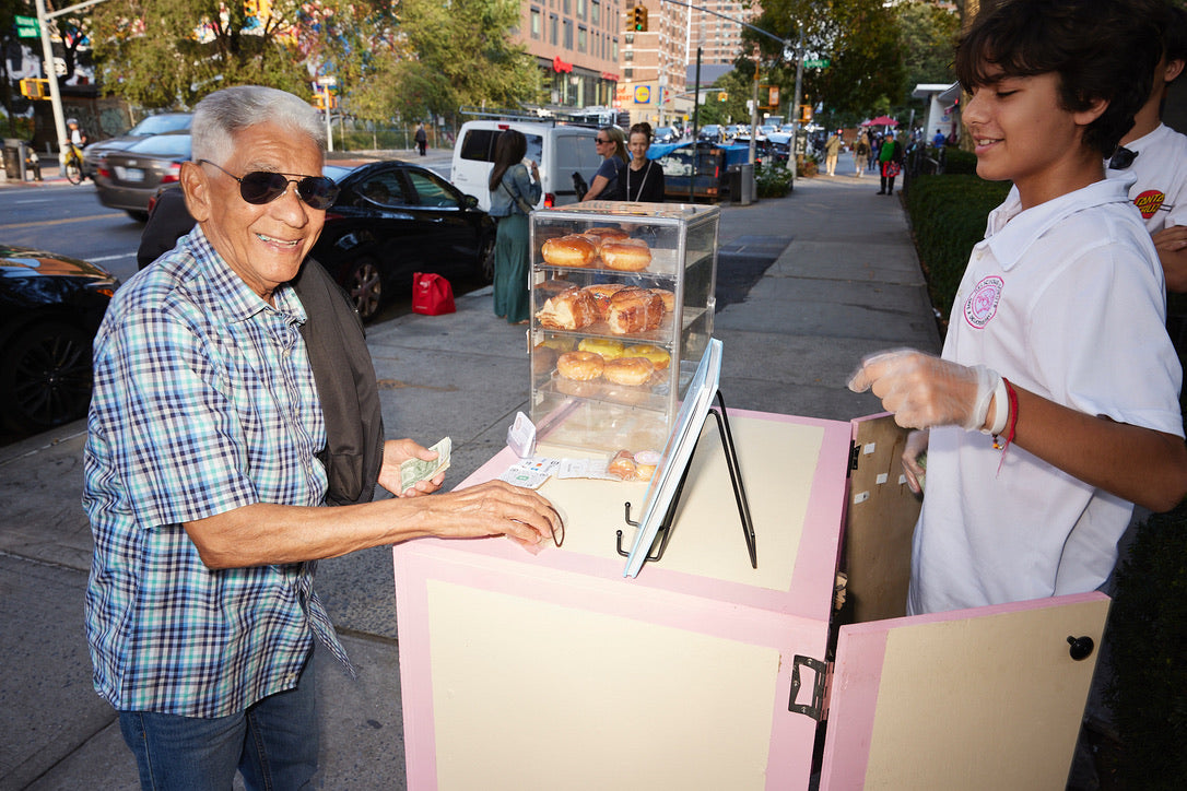 Through that first winter, I taught myself how to make yeast-raised donuts. I tested batch after batch until I finally got it right. On March 6th, 2022, I brought yeast donuts to the streets for the first time. It wasn’t perfect yet, but people kept coming back. Last summer, I built my first donut cart from scratch. Since then, I've been out in the Lower East Side every weekend (and 3 times a week during summer), serving homemade donuts to my neighbors, friends, and visitors from all over the city.